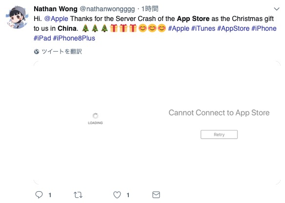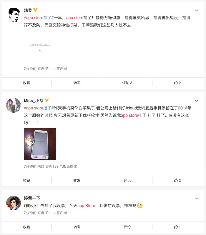 无法拜访的问题,包含我国区在内,一切区域版别的 App Store 均无法衔接。在微博上已经有不少用户反映这一问题,但在 Twitter 上好像没什么人评论。动点科技发现,用户经过 VPN 翻开 App Store 能够正常衔接,无法拜访的情况好像只存在于我国,Twitter 上也有用户指出了这一点。