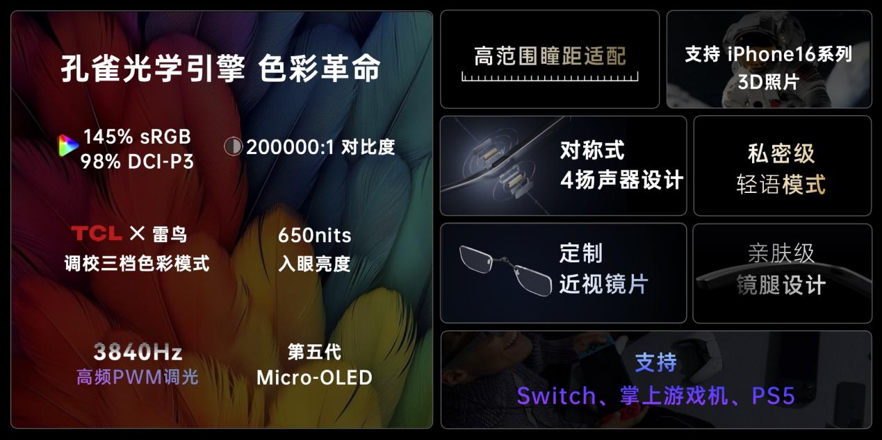 雷鸟Air 3的发布标志着消费级AR眼镜技能的严重前进。该产品搭载了全新的孔雀显现引擎、第五代Micro-OLED微型显现屏以及一起的双单元背靠背音频结构,在显现亮度、颜色表现、明晰度和音效等多个方面完成了明显提高。这款仅重76克的轻量级眼镜,成为了AR眼镜影音体会的新标杆,为用户带来了沉溺式的视听享用。